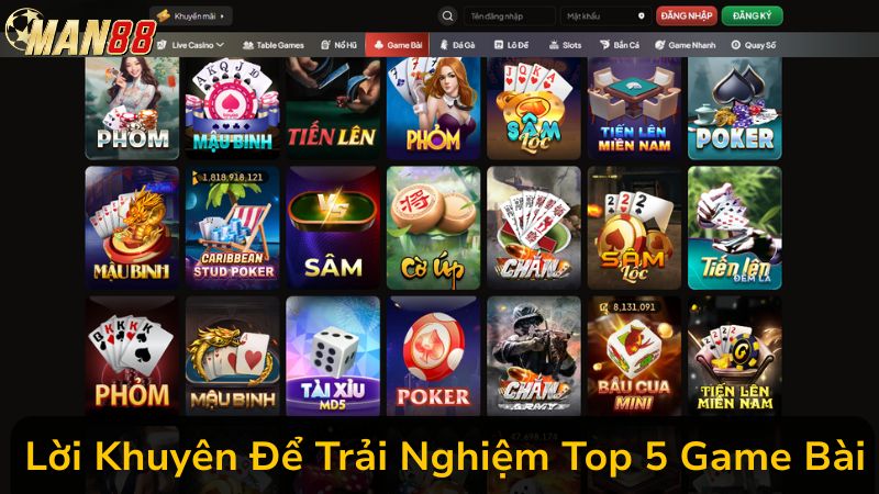 Điểm Danh Top 5 Game Bài Man88 Đáng Chơi Nhất